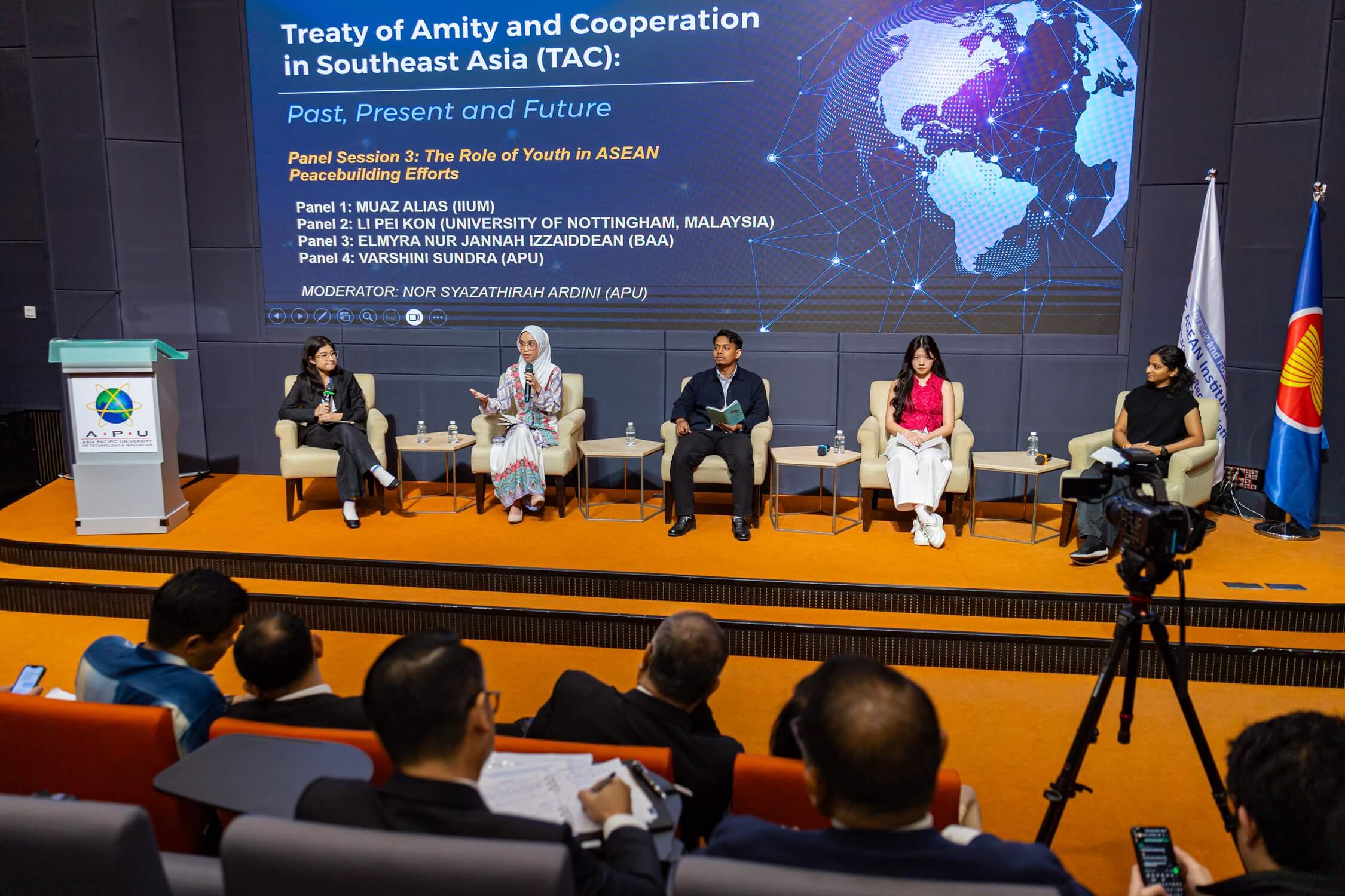 In a landmark move, the panel on youth engagement was moderated by Nor Syazathirah Ardini, an APU International Relations undergraduate, and featured a dynamic line-up of young leaders: