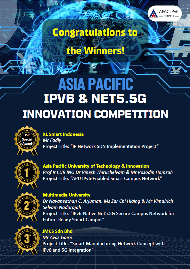 The winning project, aptly titled “APU IPv6-Enabled Smart Campus Network”, exemplifies how universities can harness the latest networking and connectivity technologies to enhance academic excellence, operational efficiency, and student experience.