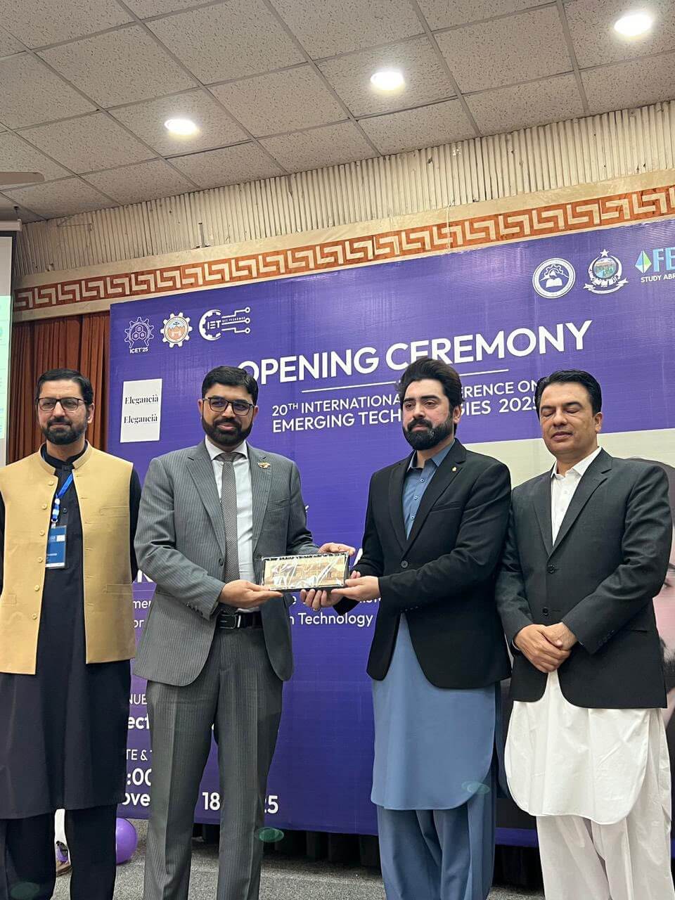 Reflecting on the invitation, Dr Hassan shared, “I was invited by Professor Dr Nasru Minallah, Chair of ICET 2025 and Director of the National Centre for Big Data & Cloud Computing at UET Peshawar, in recognition of my research contributions in AI-driven security for cloud-native environments, which strongly aligned with the conference’s focus on emerging technologies.”